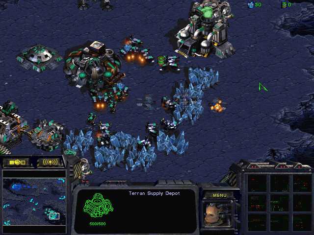 I had an observer version of Fading Realm and despite a bit of grumbling from praetor, the map was agreeable to both parties. Johnny selected his much vaunted terran forces and started in the upper left corner, while praetor left his fate to chance, drawing terran in the lower right. Both players had nearly identical early game builds. Both put a depot down on eight, then a barracks on ten. Johnny chose to place a bunker on the plateau leading to his main while praetor placed his next to his command center. Both players scouted with SCVs, getting a glimpse of the others plans. The only deviation in build orders was that praetor made his factory behind his minerals, perhaps hoping to avoid detection by comsat. Unfortunately, he had to float it before he could produce units.