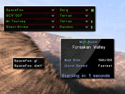 game SpaceFoo chose Zerg and spawned in the lower left corner, and