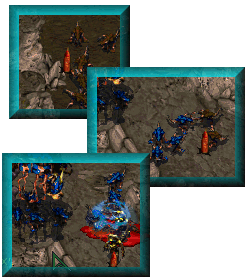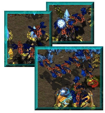 A 2v2 now turned into a 1v1 With both teams having lost one in their numbers, the game has become a one on one battle. Rookie has been making more mutalisks and zerglings, while Peppy has continued making zealots, templar, and dragoon from his two gateways. Rookie sensing an opportunity to hurt his opponent, sends a flock of mutalisks straight into Peppy's mineral line finding very little resistence./br2/mutar3.gif)