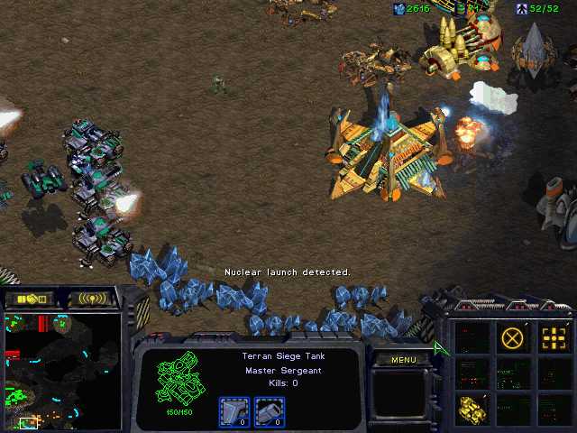 I used feed the reaver and killed it, but he just brought more and destroyed my forward position. I had yet to start making scv's at my expansion, another error. I made a sci-facility and pondered my next move, when it came to me: Another push! But not at the natural. Y'know that little spot on the bottom start position that you can't see unless you build there? I dropped 2 tanks, 7 marines, an scv, and a ghost (i had grabbed a Covert ops). I added on a nuke silo at my expansion and started a nuke.