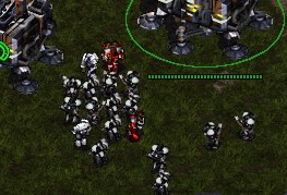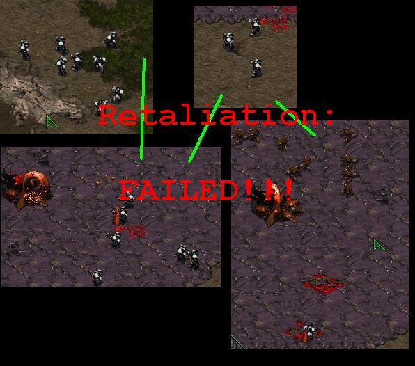 But Trey. hatches reinforcements from his two hatcheries in the form of a few mutalisks. These help out for a bit and manage to feed their glaive worms the meat of two marines in their .001 second lifespan, but soon succumb to the power of the gauss rifles. After the mutalisks are disposed of, Trey. scrambles to morph his larvae into eggs to buy him time. JakobderLudner's infantry tear through the base and destroy both sunkens and the hatchery. But More mutalisks hatch from the eggs and then destroy the rest of the infantry. Trey. tastes victory for a while when he disposes of all the attacking infantry and the weeping medics are left to heal each other.