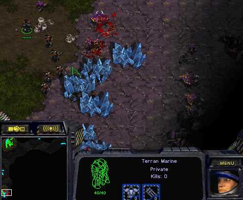 The sunken goes away before it gets a chance to deal any damage. Some zerglings approach and are leveled, but not before killing one of the marines.